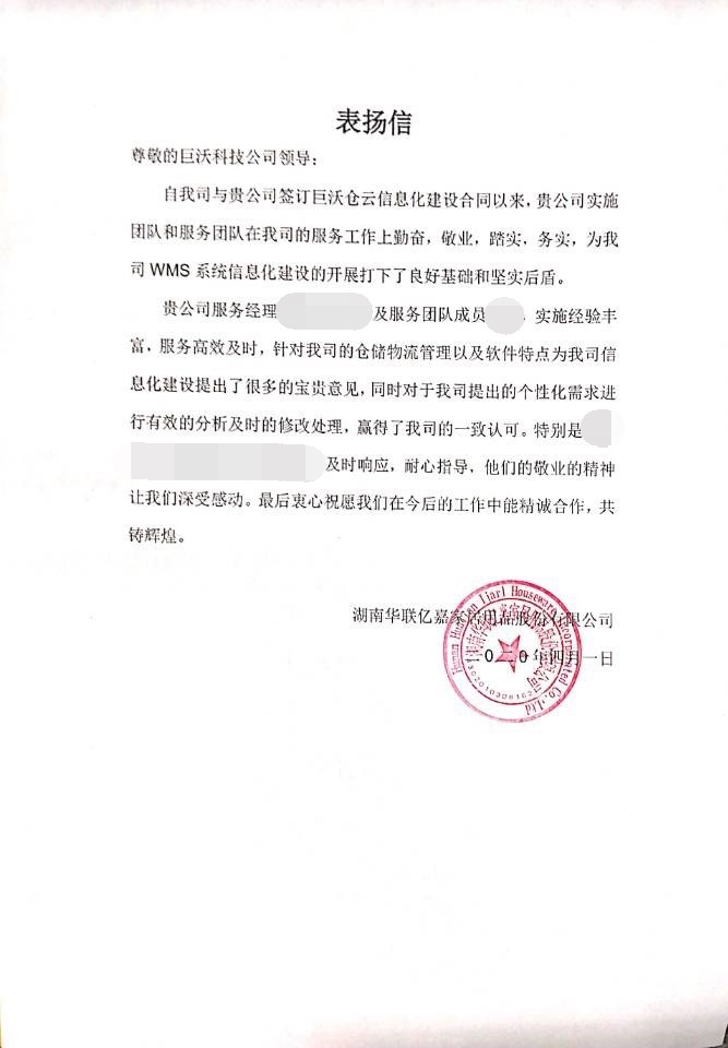 以下為表揚信內(nèi)容,對涉及保密性信息我們做了相關(guān)處理~